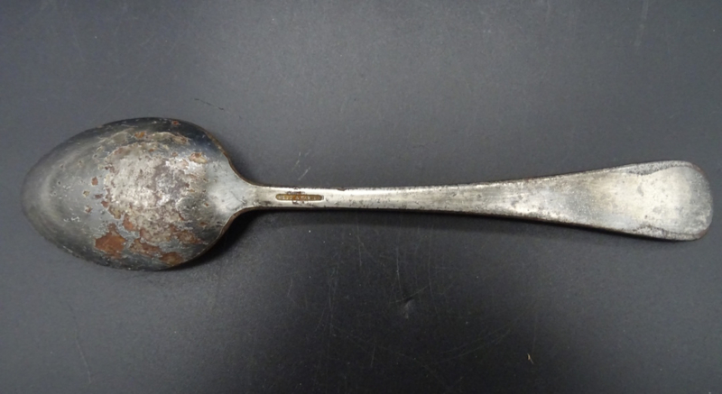 US Medical Departement silver plated spoon, marked on the front USA MD and on the back maker marked Reed & Barton.