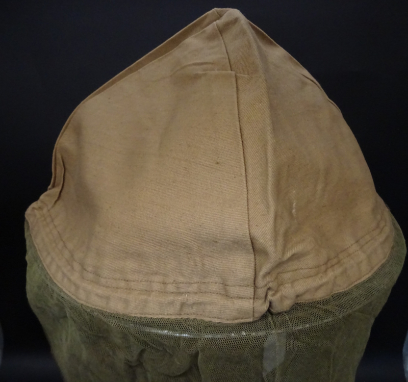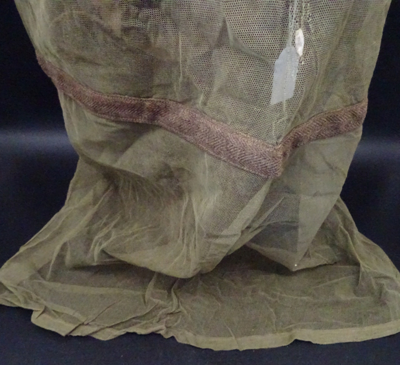 British WW2 mosquito net helmet cover as were used in the Pacific theatre. We have 3 pieces available, all in unused condition. 2 are dated 1943 on the inside 1 is dated 1944.