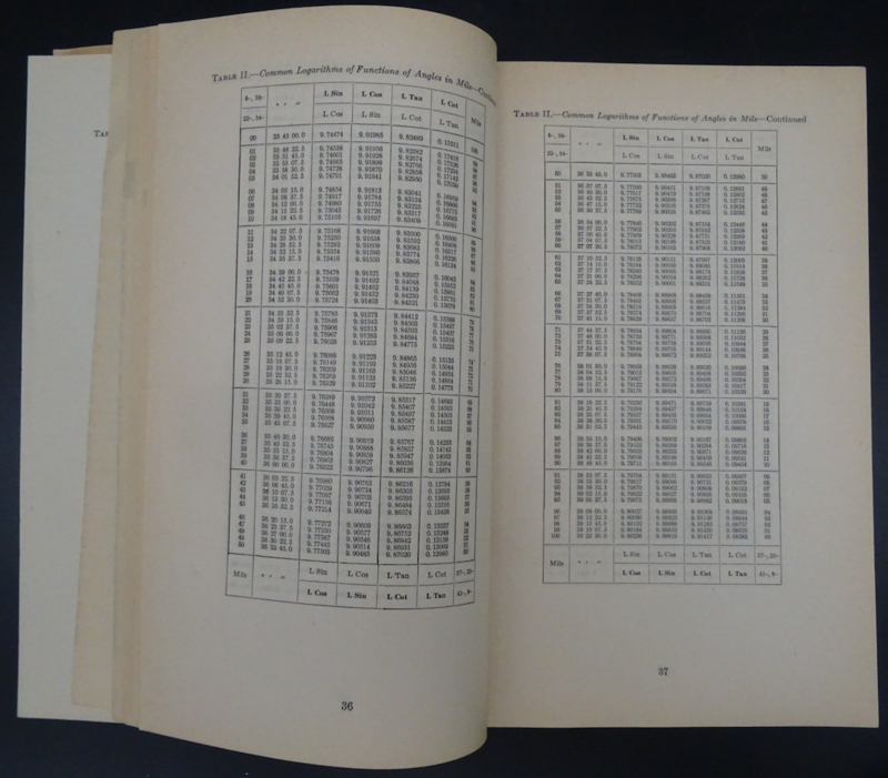 US War Department Technical Manual TM20-230. Logarithmic, trigonometric, and mathematical tables for artillery, dated october 1944