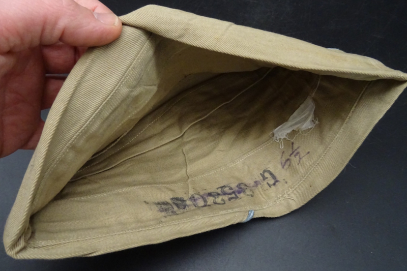 US Infantry garrison cap WW2, chino summer version with label from the quartermaster depot