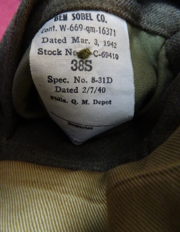 Excellent condition Class A jacket from a corporal in the 2nd USAAF who previously served with the 15th USAAF. Has 6 overseas stripes for 2,5 years of overseas service and an honorable discharge patch. Complete with all the buttons and collar discs. Size is 38 S, made by Ben Sobel Co. Dated March 3, 1942.