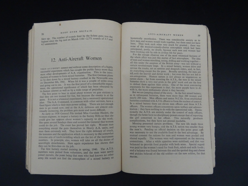 Roof over Britain - The official story of the A.A. defences 1939-1942 published in 1943. Cover is a bit worn and loose, 88 pages.